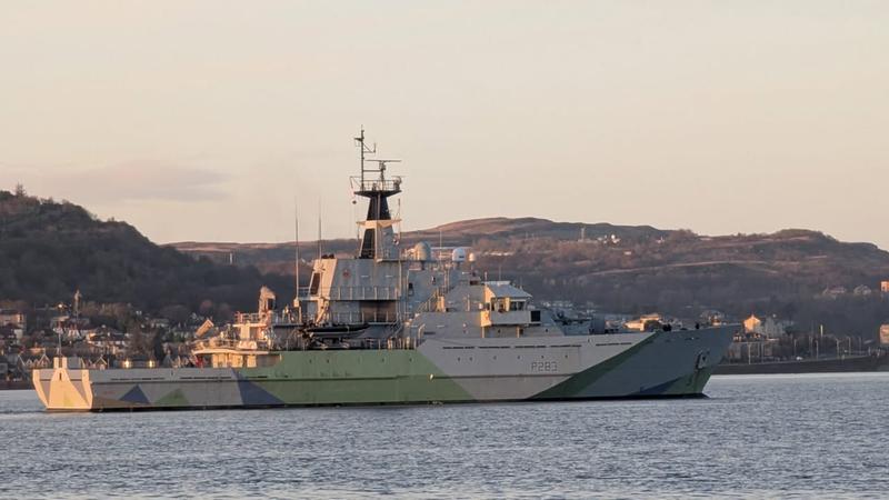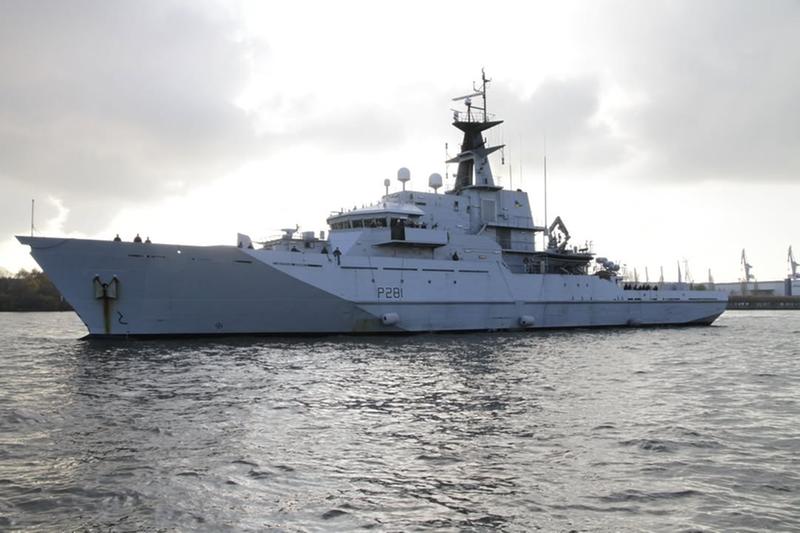 Die Fregatte „Hamburg“ vor einem der Wahrzeichen der Hansestadt, der Elbphilharmonie.